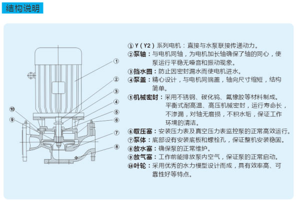 5、維(wéi)修方便。無(wú)需拆(chāi)卸管道.隻要拆下泵蓋蝮(fù)母.取出電機及傳動組件即可進行檢修維護。